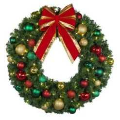 36″ Lit LED Warm White Decorated Wreath – DELUXE Colors Of The Holidays – Bow Option Available